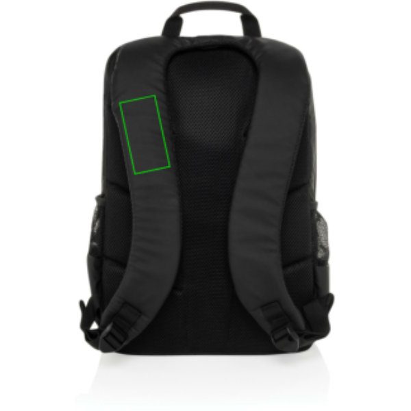 Lo zaino porta PC da 15,6" Lima in rPET Aware™ idrorepellente offre la perfetta combinazione di stile e protezione per la vostra tecnologia. Realizzato in 100% rPET con rivestimento in PU, questo zaino è progettato per salvaguardare i vostri oggetti essenziali. Lo scomparto principale è dotato di un comparto dedicato ai laptop da 15,6", con un logo esclusivo nell'angolo in alto a sinistra e un cinturino in velcro per una maggiore sicurezza. All'interno, sono presenti due tasche con protezione RFID e due passanti portapenne. Dispone anche di due tasche anteriori con cerniera, quattro tiretti con inserti neri e due tasche laterali realizzate per metà in rete e per metà in poliestere. Gli spallacci regolabili garantiscono il comfort, mentre le cerniere impermeabili anteriori e posteriori proteggono i vostri effetti personali dalle intemperie. Il 2% del ricavato di ogni prodotto venduto con AWARE™ sarà devoluto a Water.org. Senza PVC.