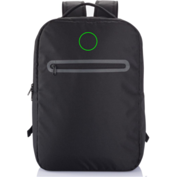 Zaino porta computer in poliestere 300D. Nel compartimento principale c’è anche una tasca porta tablet e un organizer. Senza PVC.