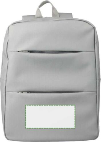 Zaino portacomputer in PU da 15 pollici, include due tasche anteriori con chiusura lampo, ampio scomparto con chiusura lampo, vano per il laptop con chiusara a velcro, molteplici inserti interni, schienale ventilato ed imbottito, cintura per trolley, spallacci regolabili, idrorepellente