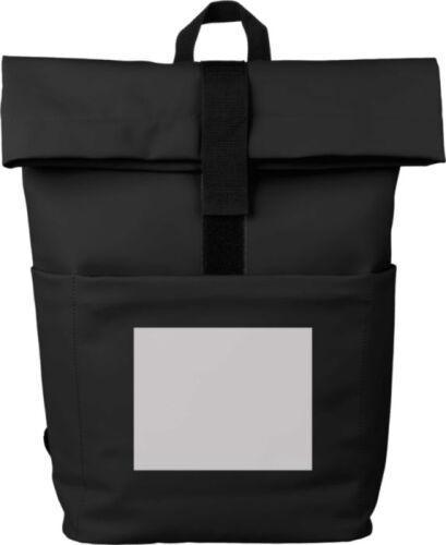 Zaino rolltop in pelle PU, fodera in PU 210 D, supporto in schiuma PE 5 mm, include vano per laptop da 15 pollici, tasca sul lato anteriore con chiusura lampo