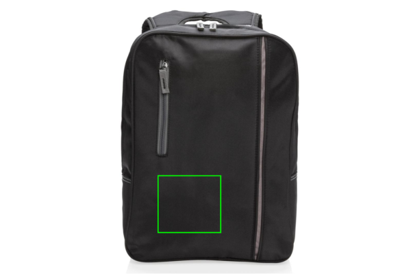 In microfibra e motivo in colore grigio, 2 scomparti e scomparto imbottito per computer da 15’’, uscita per auricolari, tracolla regolabile con tasca per cellulare. Design registrato® Dimensioni: 11,5 x 29 x 40 cm.