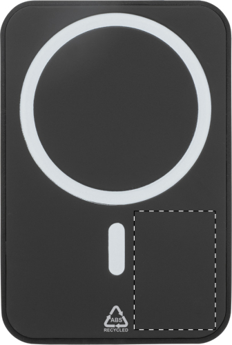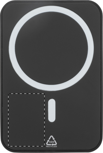 Supporto magnetico per auto in ABS riciclato con caricatore rapido wireless incorporato (15W) e supporto regolabile per il montaggio sulla bocchetta dell'aria. Include un anello metallico autoadesivo che consente l'utilizzo della funzione magnetica su qualsiasi dispositivo ricaricabile in modalità wireless. Compatibile con iPhone® 12 o più recente. Cavo di ricarica USB incluso.