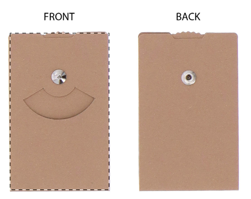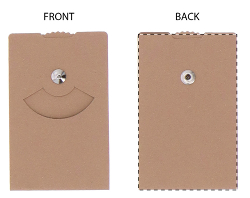 Disco orario in cartoncino kraft plastificato personalizzabile, di dimensioni compatte come quelle di una carta di credito. Il costo comprende la personalizzazione a colori su tutta la superficie. MOQ: 100 pezzi.