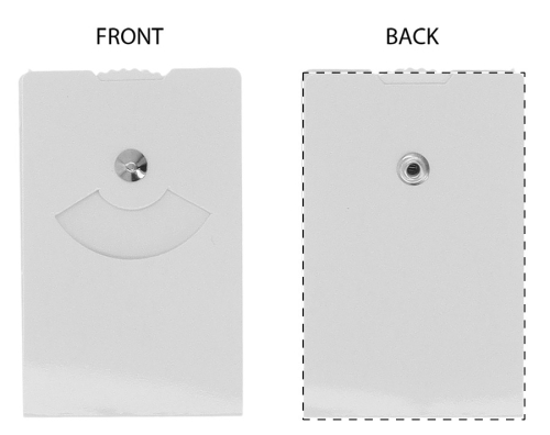 Disco orario in cartoncino plastificato personalizzabile, di dimensioni compatte come quelle di una carta di credito. Il costo comprende la personalizzazione a colori su tutta la superficie. MOQ: 100 pezzi.