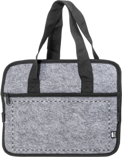 Organizer in feltro RPET pieghevole per il bagagliaio dell'auto, con tasca anteriore chiusa da cerniera, manici lunghi, fibbie laterali per riporlo comodamente ed etichetta RPET. Comprende uno scomparto aperto e uno scomparto refrigerato con imbottitura in alluminio chiuso da cerniera.