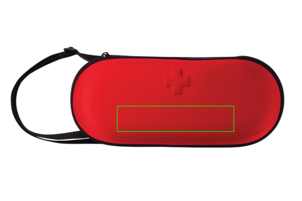 In EVA, contiene: gilet ad alta visibilità, torcia dinamo, coperta argentata d’emergenza, benda triangolare, benda PBT, tamponi antisettici, asciugamano usa e getta, tamponi in TNT, nastro, cerotti, spille e forbici in plastica. Conforme a EN13485:2003.