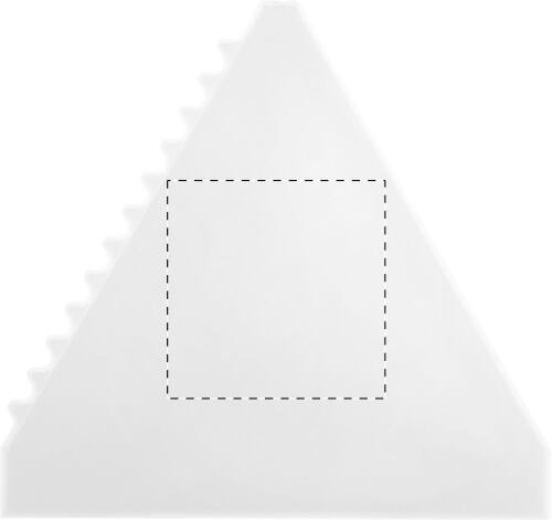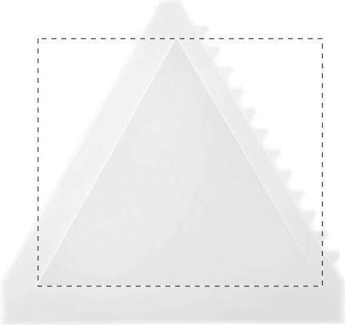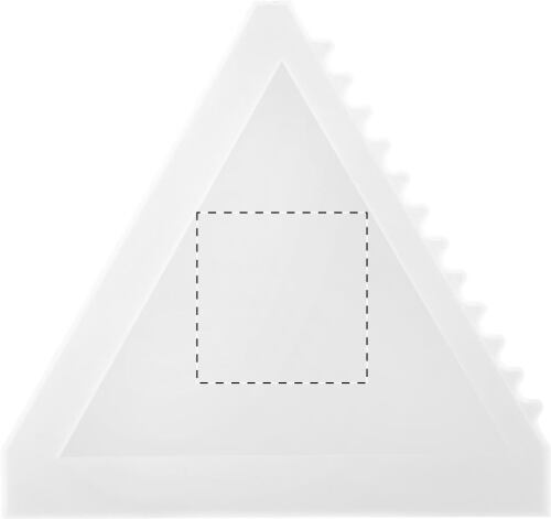 Raschietto per il ghiaccio in plastica di forma triangolare.