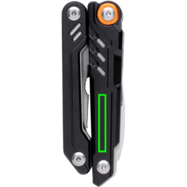 Attrezzo ultra resistente con 13 funzioni. Confezionato in lussuosa scatola regalo con custodi 1680D. Corpo in alluminio e attrezzi in acciaio inossidabile. Elenco degli attrezzi: pinze a becchi lunghi, pinza, tronchesina, lama seghettata, apribottiglie, cacciavite grande a taglio, acciavite medio a taglio, coltello, lima, cacciavite a stella, apriscatole, cacciavite piccolo a taglio e sega.