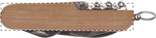 Coltellino tascabile in acciaio inox con manico in legno e 9 funzioni.