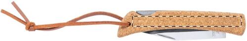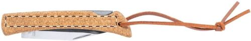 Coltello tascabile in acciaio con manico in sughero naturale, cordoncino in pelle PU e chiusura di sicurezza