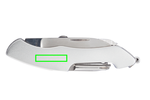 13 funzioni, coltellino tascabile in alluminio anodizzato con grande lama, sega, togli squame, estrattore di chiodi, forbici, cavatappi, cacciavite a taglio, apri lattine, cavatappi, cacciavite a stella, piccola lama, limetta e punteruolo e in aggiunta torcia in alluminio anodizzato con 9 LED. Confezionato in scatola nera magnetica.