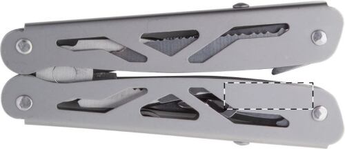 Multi utensile in acciaio inox con 9 funzioni ed astuccio di poliestere.