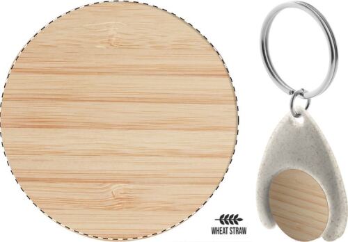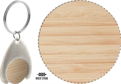 Portachiavi in plastica ecologica di paglia di grano con gettone per carrello della spesa in bambù.