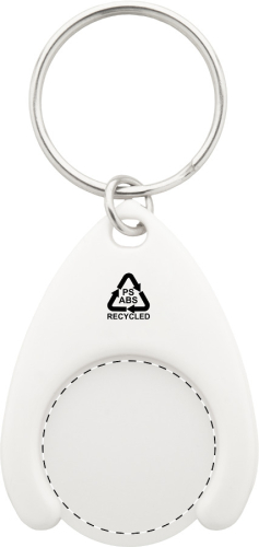 Portachiavi in plastica ABS e PS riciclata con moneta per il carrello della spesa ed anello in metallo. Dimensione moneta: ø24×2 mm.