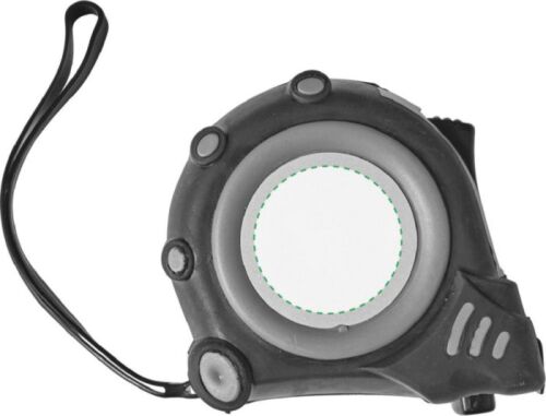 Flessometro 5 metri con bottone d'arresto, clip per cintura, cinturino da polso, in ABS. Sistema metrico in centimetri e pollici.