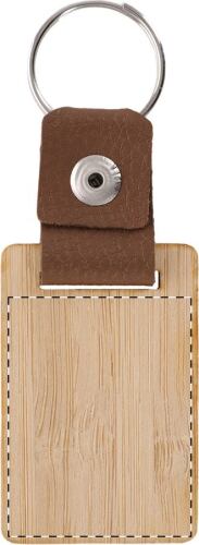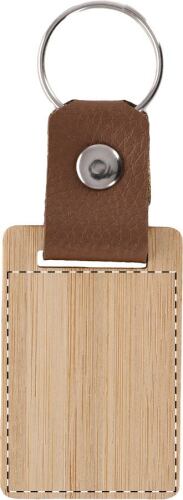 Portachiavi in compensato di bambù e pelle PU con anello in metallo.