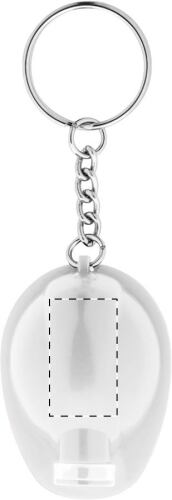 Portachiavi a forma di casco di sicurezza in plastica con luce a LED. Con batteria a bottone.
