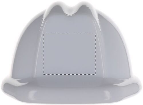 Portachiavi a forma di casco di sicurezza in plastica.