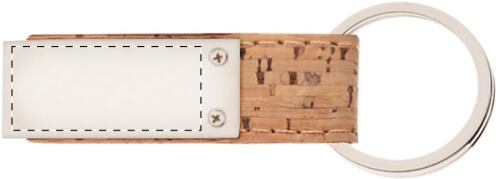 Portachiavi rettangolare in metallo con sughero naturale e cinturino in pelle PU. In scatola di cartoncino kraft.