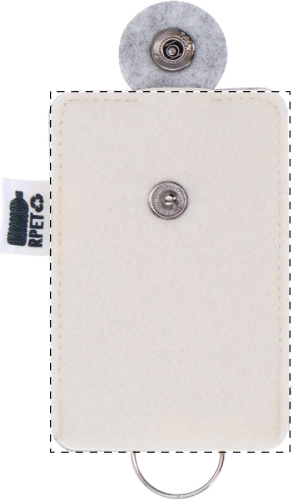 Custodia portachiavi in feltro RPET personalizzabile in sublimazione ed etichetta RPET. Il costo comprende la stampa in sublimazione sul lato anteriore della custodia. MOQ: 100 pezzi.