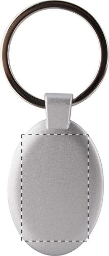 Portachiavi di forma ovale, corpo in alluminio con anello di metallo.