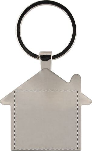 Portachiavi in metallo a forma di casa con inserto in bambù. In confezione di carta kraft.