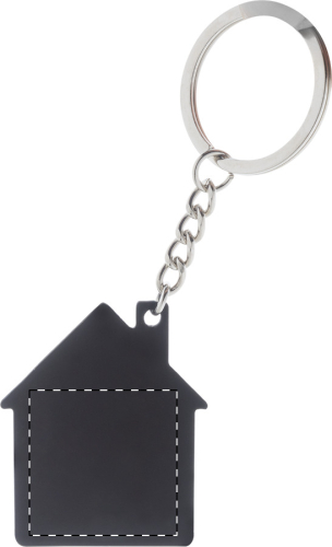 Portachiavi in acciaio riciclato a forma di casa con finitura gommata. Trattamento speciale che permette l'incisione laser a specchio.