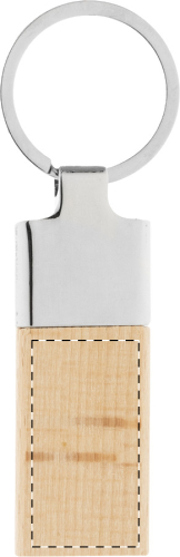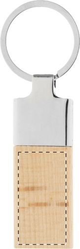 Portachiavi rettangolare in metallo e legno di faggio con anello in metallo.