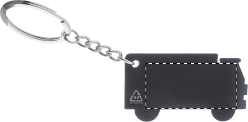 Portachiavi in acciaio riciclato a forma di camion con finitura gommata. Trattamento speciale che permette l'incisione laser a specchio.
