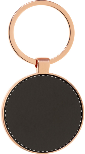 Portachiavi ovale in metallo con finitura dorata e placca color canna di fucile. Confezione in scatola di cartoncino kraft.