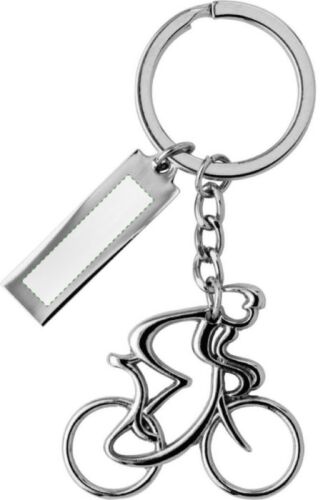 Portachiavi ciclista in metallo con una placca rettangolare per incisione, confezione regalo