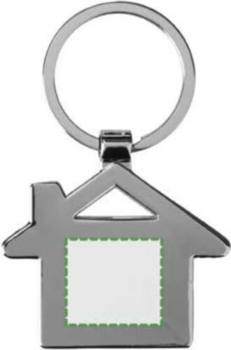 Portachiavi in lega di zinco con frontale in bambù a forma di casa adatto per la stampa, foro nella parte superiore, anello in metallo, custodia singola in carta kraft marrone