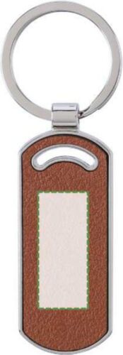 Portachiavi in pelle riciclata a forma ovale, anello in metallo, include goffratura del logo “pelle riciclata” su di un lato, custodia singola in carta marrone