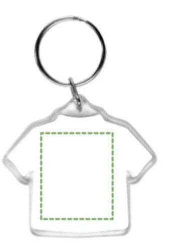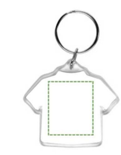 Portachiavi in plastica con anello metallico a forma di maglietta.