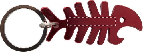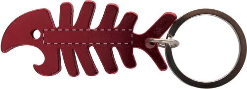 Portachiavi in alluminio a forma di pesce con funzione apribottiglie e avvolgicavo.