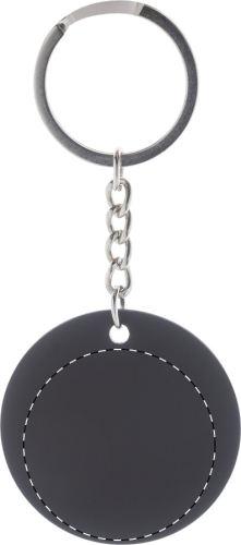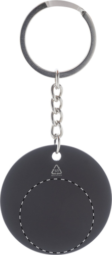 Portachiavi in acciaio riciclato di forma rotonda con finitura gommata. Trattamento speciale che permette l'incisione laser a specchio.