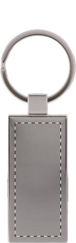 Portachiavi in metallo di forma rettangolare con inserto in bambù. In confezione di carta kraft.