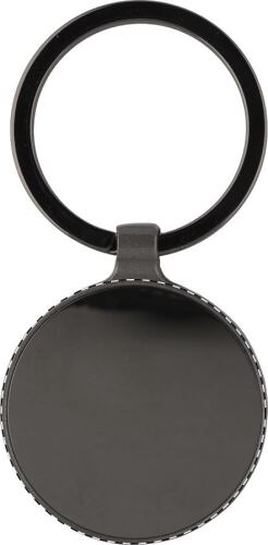 Portachiavi tondo in metallo con finitura canna di fucile e piastra lucida su entrambi i lati. Fornito in confezione regalo nera.
