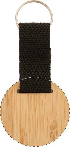 Portachiavi in compensato di bambù con fascia in poliestere e anello in metallo.