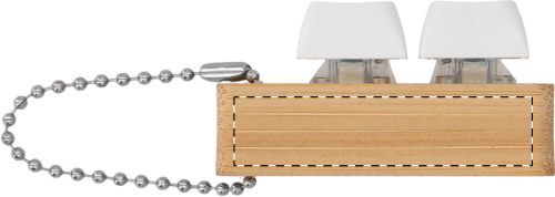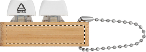 Portachiavi in bambù con catenella in metallo e 2 tasti antistress in ABS riciclato che emulano quelli di una tastiera.