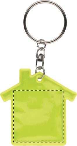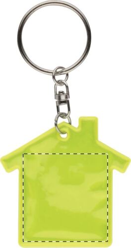 Portachiavi a forma di casa in materiale riflettente alta visibilità. Solo per uso promozionale, il prodotto non può essere considerato un dispositivo di protezione personale.