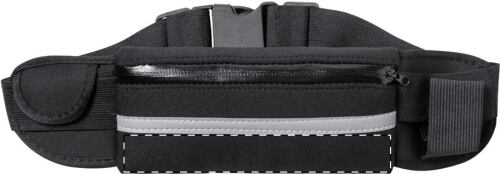 Marsupio in soft shell con uno scomparto chiuso da cerniera, una piccola tasca, portabottiglie elastico, banda riflettente e tracolla regolabile. Solo per uso promozionale, il prodotto non può essere considerato un dispositivo di protezione personale.