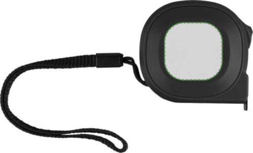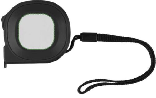 Flessometro in ABS da 3 metri, cordino da polso in poliestere, nastro in metallo (16 mm) con scala in centimetri e pollici, include pulsante con blocco, confezionato singolarmente in una scatola in cartone avana. Sistema metrico in centimetri e in pollici