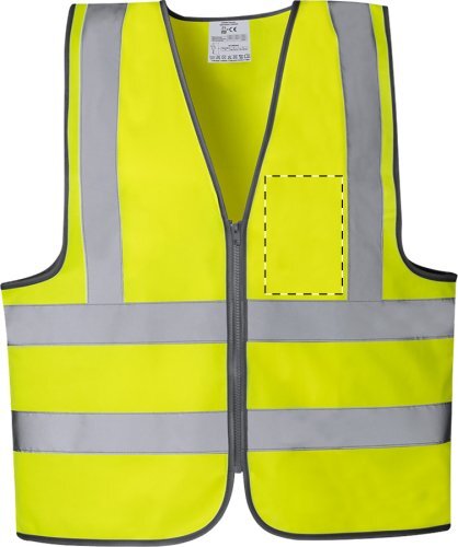 Gilet ad alta visibilità con cerniera in poliestere. Dispositivo di protezione individuale con certificazione EN ISO 20471 Classe 2.
