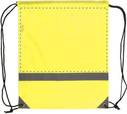 Sacca in poliestere 190T con strisce riflettenti alta visibilità. Solo per uso promozionale, il prodotto non può essere considerato un dispositivo di protezione personale.