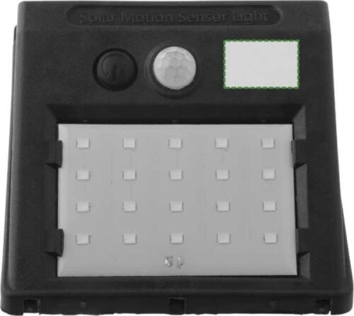 Luce solare in PP con LED 20-COB. Dispone di un sensore notturno (CDS) e di un sensore di movimento (PIR). Include una batteria da 800 mAh, con un cavo di ricarica, classificazione IP44 e funzioni di luce costante o lampeggiante. Confezionata singolarmente in una scatola di cartone avana.