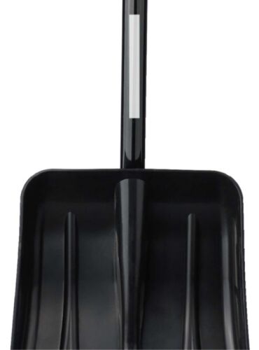 Pala da neve in PP e acciaio con lunghezza totale di 78,5 cm, modello per destrorsi con design a due pezzi staccabile per una facile conservazione, manico in plastica resistente, confezionata in blocco con 20 pezzi per scatola.