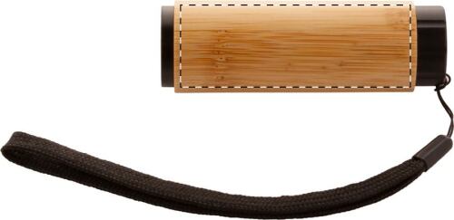Torcia in alluminio con copertura in bambù, LED COB e laccetto per il trasporto. Comprende 3 batterie AAA.