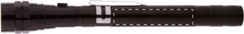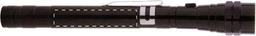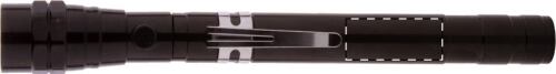 Torcia in alluminio a 3 LED con testa estensibile e flessibile, magnete sulla parte superiore e clip laterale in metallo. Batterie a bottone incluse. Lunghezza massima: 57 cm.
