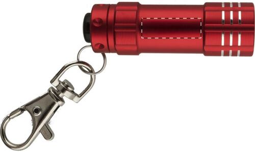 Mini torcia in alluminio con 3 LED e moschettone. Batterie a bottone incluse.